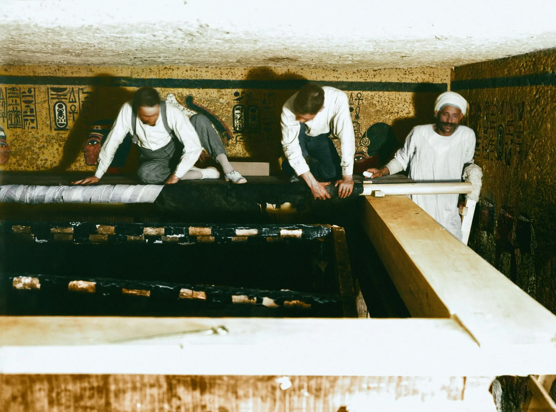Under the left-hand bed depicting the hippopotamus goddess, Carter found a small, irregular hole, which was in a walled-up entrance leading through to the annex. The hole was made by grave robbers who presumably broke into the tomb shortly after the burial but were disturbed by tomb guards. In this chamber the effects of the robberies were disastrous.